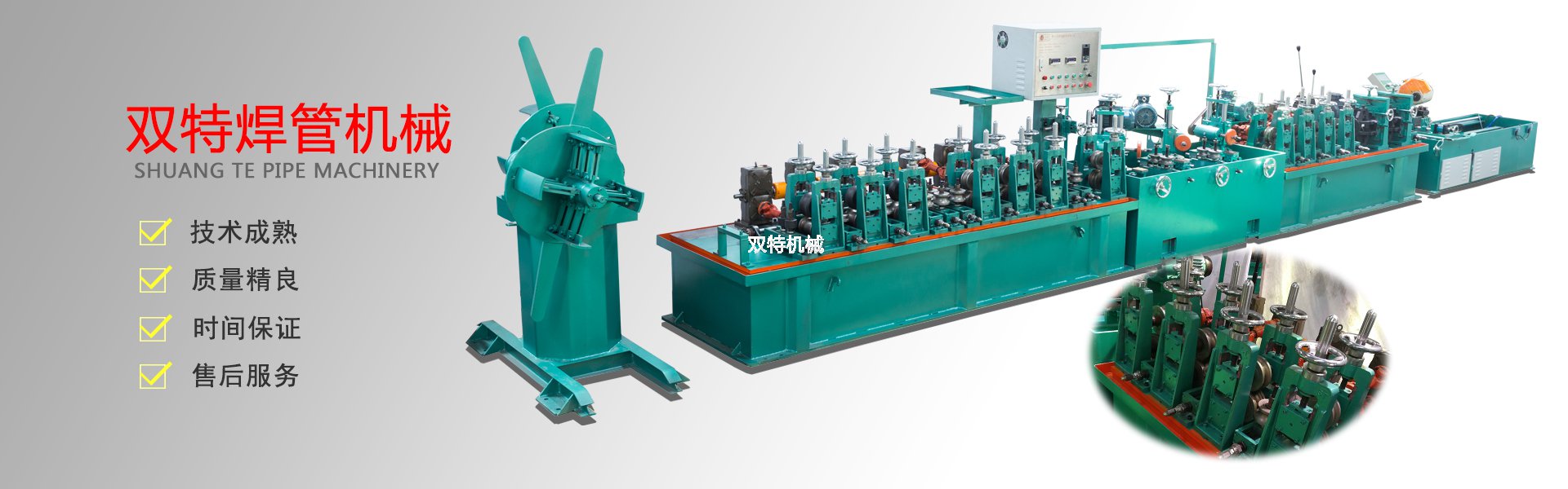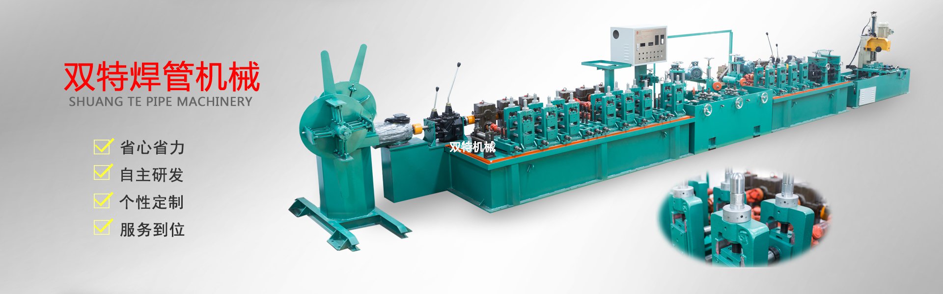 佛山市雙特機(jī)械科技有限公司是一家不銹鋼制管機(jī)生產(chǎn)廠家、公司產(chǎn)品有:不銹鋼飲用水管制管機(jī)、不銹鋼制品管制管機(jī)、高頻焊管機(jī)、不銹鋼拋光機(jī)、在線光亮固溶退火設(shè)備、不銹鋼焊管機(jī)內(nèi)外在線整平裝置、復(fù)合管機(jī)及其它配套設(shè)備。本公司奉行“以技取勝、精益求精”的企業(yè)理念,以“科學(xué)、嚴(yán)謹(jǐn)、創(chuàng)新”的工作方式,開(kāi)拓進(jìn)取。以敏銳的市場(chǎng)觸覺(jué)探索業(yè)內(nèi)流行方向資訊,以市場(chǎng)需求為導(dǎo)向,以客戶為中心,用優(yōu)質(zhì)的產(chǎn)品,優(yōu)質(zhì)的服務(wù)為不銹鋼行業(yè)的發(fā)展和繁榮,做出更大的貢獻(xiàn),并熱忱歡迎社會(huì)各界人士加盟雙特,共創(chuàng)美好明天!